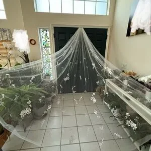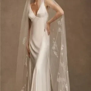 BHLDN Theia Jasper Embroidered Cathedral Veil— never worn! NWT (new with tags) Beautiful long white veil with delicate floral embroidery and beading. Perfect for weddings or special occasions.