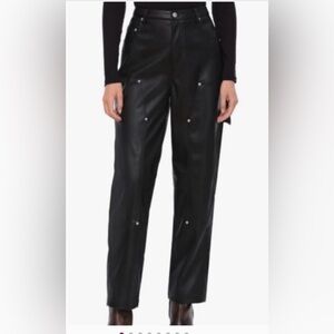 NWT Avec Les Filles Faux Leather Cargo Barrel Pants Size 8