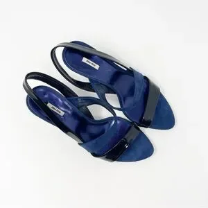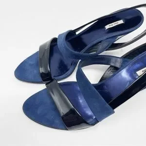 Miu Miu Navy Black Suede Patent Leather Slingback Sandals Heels 39.5