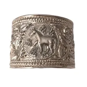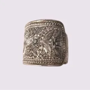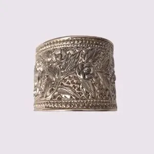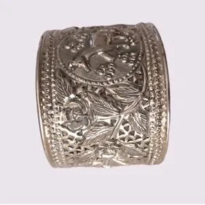 Very nice used condition! This CFJ Sterling Silver Ornate Repousse Textured Floral Equestrian Wide Cuff Bracelet is approx 2 1/2" across the inside, 2" wide with an 11/4" opening, weights 53