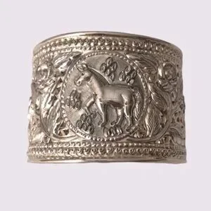 Vintage Equestrian Sterling Silver Wide Cuff Bracelet Stamped 925