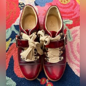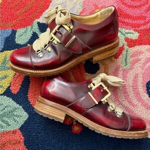 Size 37 The Office of Angela Scott Mr. Logan Oxfords. These are practically brand new, worn to try on and wear around tbe house. One set of laces. Very beautiful Oxblood and black color. Tiny white scuff shown in pics that can be polished out.