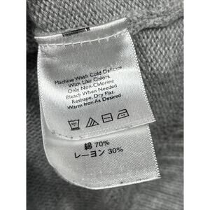 The product is a women's gray knit one button fitted cardigan sweater by Eddie Bauer in size medium. Made of cotton with a tight-knit fabric, this collared sweater features short sleeves and a button accent. Suitable for any occasion, it is machine washable and has a regular fit. Ideal for the winter, fall, and spring seasons, this cardigan is a stylish and versatile addition to any woman's wardrobe.