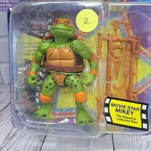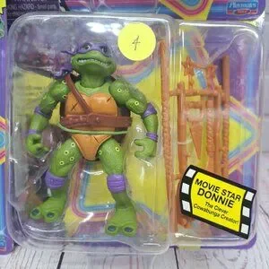 The "Teenage Mutant Ninja Turtles Classics Movie Star Set of 4" by Playmates Toys is a 2023 release featuring action figures of Leonardo, Raphael, Donatello, and Michelangelo from the animated series. These 5-inch figures are in an unopened box and represent characters from the TV show. The set includes adjustable, multicolored plastic figures of the Ninja Turtles based on the popular franchise.