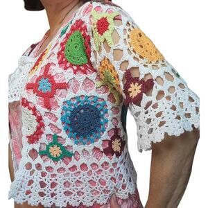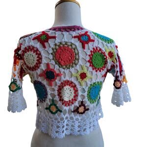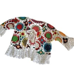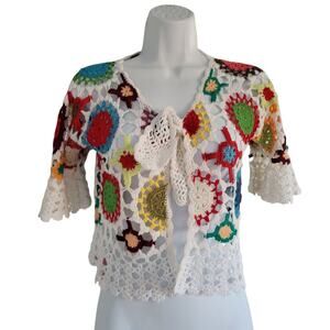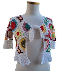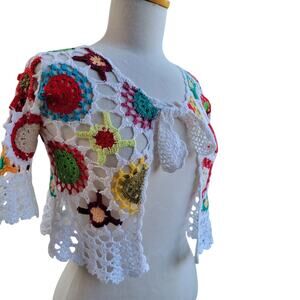 Crafty VTG Style Crochet Granny Flowers Crop Cardigan SM Multi Festival