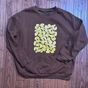 SHEIN Brown and Yellow Crewneck Sweater Avocado Design