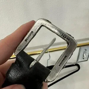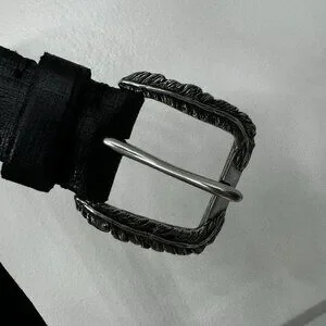 John Varvatos Feather Buckle handcrafted Belt in size 38, color black. Never worn, just without tag