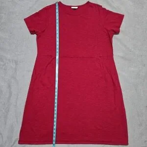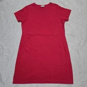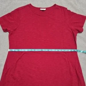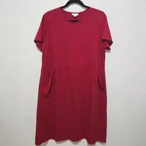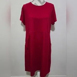J JILL Red Cotton T-Shirt Dress with Short Sleeves and Pockets Size 1X