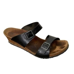BIRKENSTOCK Papillio Dorothy Graceful Cork Wedge Leather Buckle Sandal Black 10