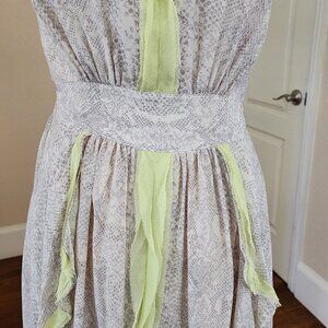 Rebecca Taylor Dress Silk A-Line Sleeveless V-Neck Midi Lined Neutral Size 0