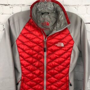 The North Face Red and Gray Puffer Jacket with Quilted Design