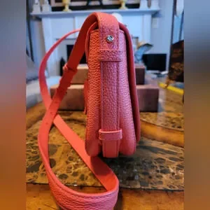 Elevate your style with this chic orange pebbled leather crossbody bag. Perfect for any occasion, it combines fashion and functionality.