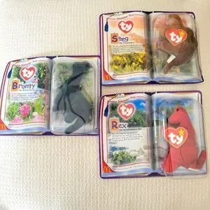 TY Beanie Babies Dinosaur Trio! These adorable dinosaurs – Rex, Steg, and Bronty – are just perfect for any collection.