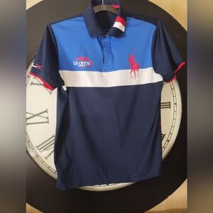 Polo RLX US Open 2015 Official Large Pony French Navy Sz M LIKE NEW hard to find and in excellent condition no flaws on the graphics in a dri-fit type material can be unisex ultimate tennis prep