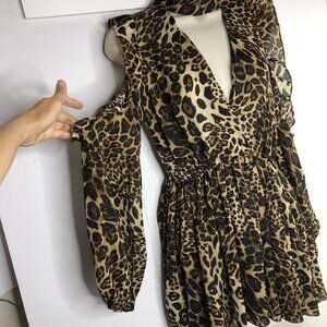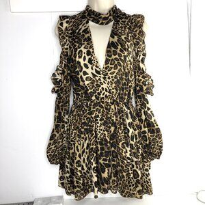 Oh Polly Open Shoulder Leopard Animal Print Mini Dress Size 2 Balloon Sleeves