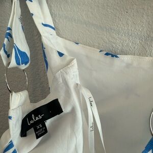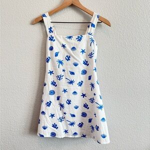 Lulus Beachcomber Babe White And Blue Shell Print Linen Mini Dress - Size XS