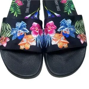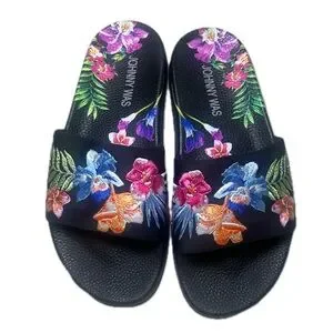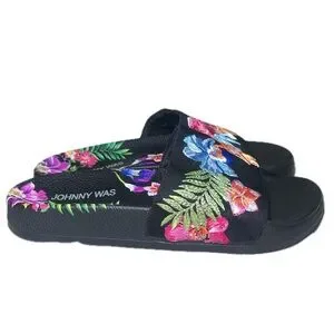Johnny Was Aruba Pool Slide Embroidered Floral Size 6