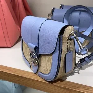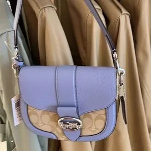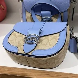 Coach Georgie Saddle Bag In Signature Canvas Light Khaki / Marble Blue