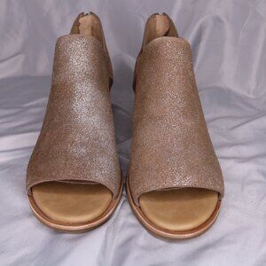 Sofft, Glitter booties, Ankle boots, Open toe, Peep toe, Block heel, Gold glitter, Tan glitter, Sparkly shoes, Party shoes, Festival, Concert, Night out, Womens shoes, Size 8, Trendy, Statement, Glam, Shiny, Metallic (subtle), New without box, Evening wear, Holiday, Disco, Y2K, Maximalist, Bold, Chic, Festive, Modern, Eye-catching, Daring, Special Occasion, Date Night, Event Wear, Shimmer, Subtle Sparkle, Effortless Glam.