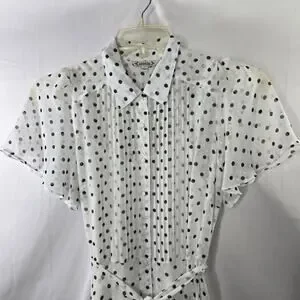Nanette Lepore Cannoli Cream Black Polka Dot Fit and Flare Dress Size 4