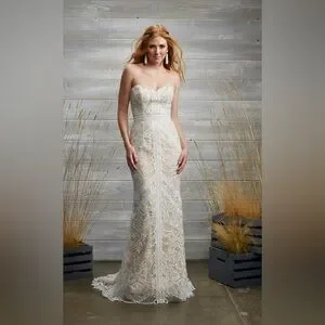 Tara Lauren Spring 2017 Strapless Lace Over Satin with Train Wedding Dress Sz 10