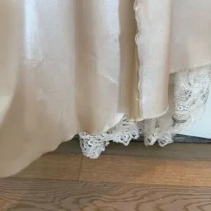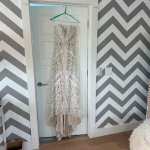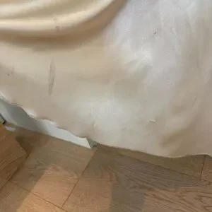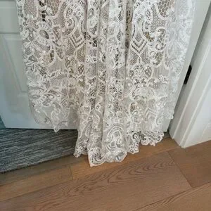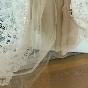 Preowned Condition: Dress is in great condition, this dress was professionally dry cleaned, however, there is dirt on some parts on the bottom of the lining and lace (please see photos). There also seems to be a small seperation at the bottom hem.