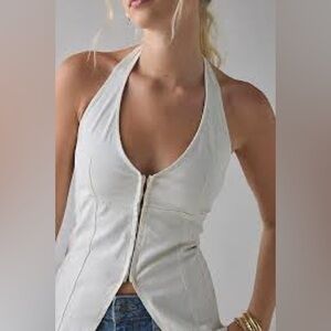 NWT Urban Outfitters Linen Blend Halter Vest Top Arctic White | L