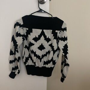 Elevate your style with this chic black and white patterned sweater. Perfect for any occasion, this sweater offers both comfort and elegance.