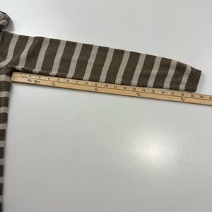 The Ann Taylor Loft Women's Merino Wool Sweater Dress is a stylish and comfortable option for casual occasions. With its long sleeves and striped pattern, this sweater dress exudes a bohemian and lagenlook vibe. The brown color adds a touch of warmth to the casual style, making it perfect for everyday wear. Made from wool, this dress is sure to keep you cozy and chic throughout the colder seasons.