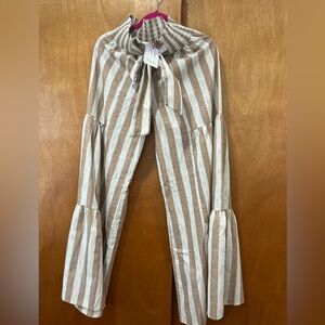 NWT WISTERIA LANE Striped Tan and White Women's Palazzo Pants - M LONG