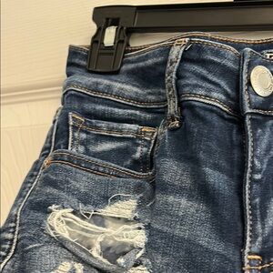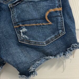 American Eagle Outfitters Women's Dark Blue Ripped Jean Shorts