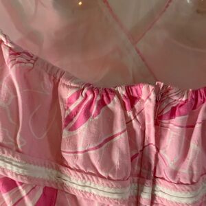 Charming Vintage Lilly Pulitzer pink halter dress with a delightful butterfly pattern. Ideal for sunny days.