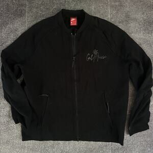 Men's Nike Tech Knit Fleece Black Full Zip Up Cotton Nylon Bomber Jacket Sz XL