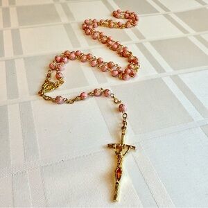 Handmade Pink Acrylic Crystal Catholic Prayer Rosary