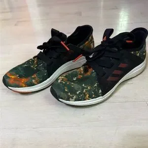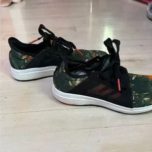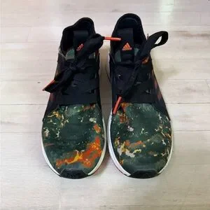 These Adidas sneakers combine sleek black, green, and vibrant orange hues, offering a bold and dynamic look. Designed for comfort and durability, they are perfect for everyday wear and active pursuits. The sneakers' stylish design ensures you stand out in any setting.
