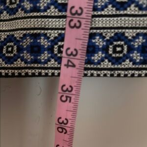 Chic navy blue dress with detailed blue and cream embroidery. Stylish and versatile. Lined. Classy