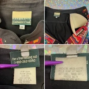 Top — cold water creek, size medium. MISSING ONE BUTTON. Could borrow from skirt or bottom of top that is tucked in. Shoulder pads are sewn in but could be easily snipped out.