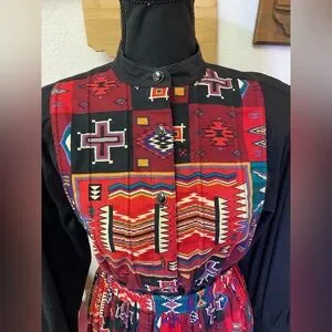 VINTAGE Desert West Sherry Holt USA Circle Skirt Set Southwestern Aztec MEDIUM