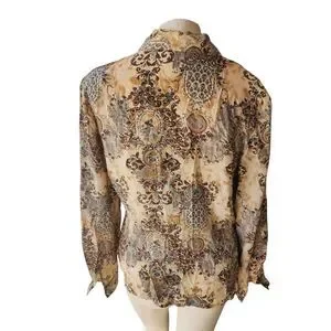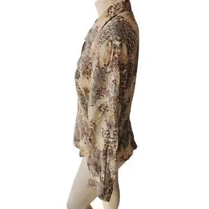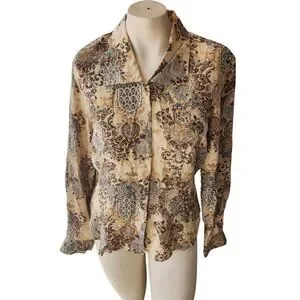 Style: Pointed collared button down 100 percent silk floral