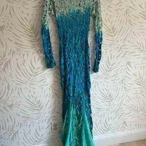 Embrace the allure of resort wear with this Sky brand gown, featuring a captivating blue hue and a dazzling sequin embellishment. The sleeveless design and plunge neckline add a touch of sophistication, while the backless style ensures a striking entrance. Perfect for cocktail events, this dress promises to turn heads with its glamorous sparkle.