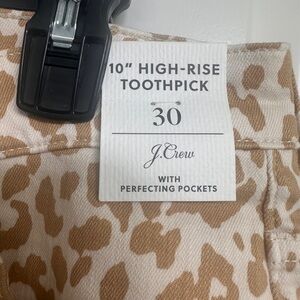 NWT J.Crew 10” high rise toothpick jeans in safari leopard. Size 30.