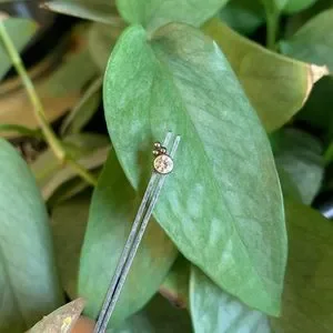 Champagne and Peridot CZ set in anodized titanium. Titanium color listed as “brown”, it is fairly close to natural titanium color but slightly darker and warmer in tone.