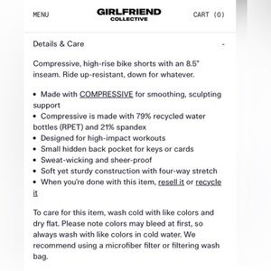 Features: High Rise Compression fit Ride up resistant Hidden pocket Sweat wicking and sheer proof 8.5" Inseam Great for high impact workouts