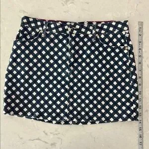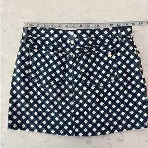 This Kate Spade mini skirt features a striking blue and white gingham pattern, perfect for casual or resort wear. Its pencil style and structured waistband offer a sleek and flattering fit, making it a versatile addition to any wardrobe.