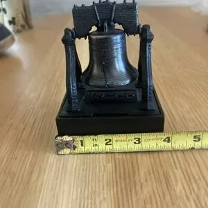 The 1976 Cast Iron Liberty Bell Coin Bank from Harrisburg, PA is a unique collectible piece made of durable cast iron. Crafted in the United States, this coin bank features a design inspired by the iconic Liberty Bell, making it a charming addition to any collection. Perfect for collectors of vintage banking memorabilia or those with a fondness for patriotic souvenirs, this coin bank is both functional and decorative.