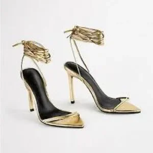 TONY BIANCO MILLIE GOLD FOIL HEELS SIZE 8