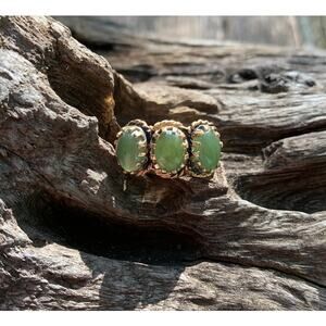 14K Gold and Nephrite Jade 3 Stone Ring Vintage Size 6