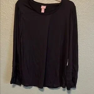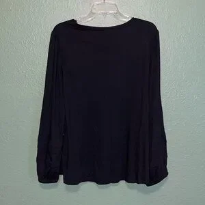 NEW Chico’s Black Relaxed Long Sleeve Blouse scoop neck ruffle sleeve top nwt
