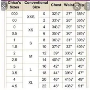 See Chico’s size chart for measurement details