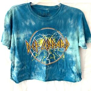 Def Leopard Blue Tie-Dye Crop Band T-Shirt SZ XL Worn 1X